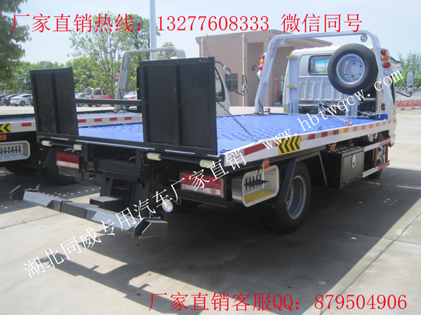 江淮康铃蓝牌平板一拖二清障车,江西五十铃108马力,5档变速箱,7.00轮胎,ABS