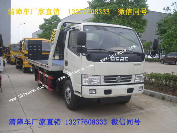 东风多利卡蓝牌一拖二平板清障车