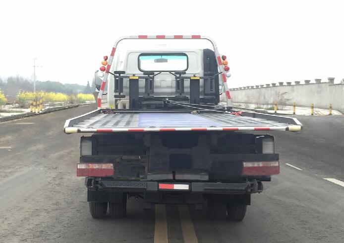 该车如采用折叠式平板则平板长度为5.6米,宽2.3米;如采用直板式平板,则平板长度为5.5米,宽2.3米。直板式平板比折叠式平板的爬升夹角更小,可供部分跑车施救使用。折叠式平板和直板式平板均采用冲压式平板,冲压式平板由1600吨的压力机冲压成型,板上可开孔,既减轻了整车重量,又增加了托举和装载能力,还增加了平台装载面的防滑功能,即美观又实用。