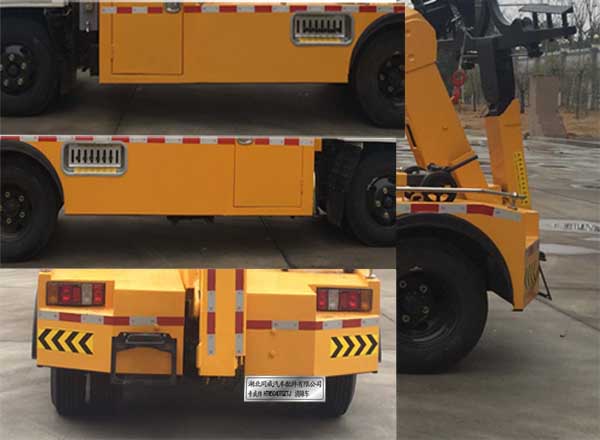 3T3D1拖吊连体型上装,两节吊臂,整体式车体,左右各一个立式工具箱,双侧联动操作装置,前保险杠装有配重,一个4吨液压绞盘(25米钢丝绳),后工作灯3只,1个工具箱,一个洗手箱,配两个小车(辅助轮),4根捆绑带,L型抱胎架一对,托叉一对,托叉座一对。