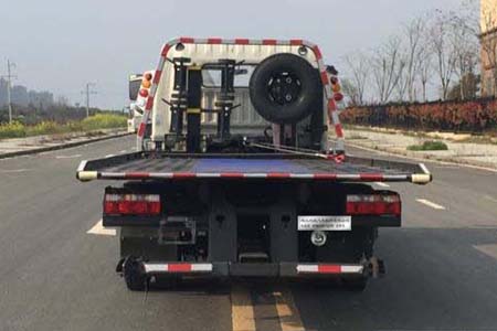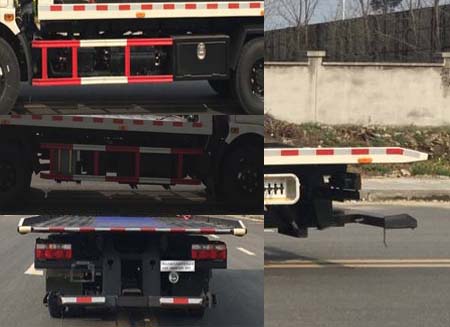 该车如采用折叠式平板则平板长度为5.6米,宽2.3米;如采用直板式平板,则平板长度为5.5米,宽2.3米。直板式平板比折叠式平板的爬升夹角更小,可供部分跑车施救使用。折叠式平板和直板式平板均采用冲压式平板,冲压式平板由1600吨的压力机冲压成型,板上可开孔,既减轻了整车重量,又增加了托举和装载能力,还增加了平台装载面的防滑功能,即美观又实用。