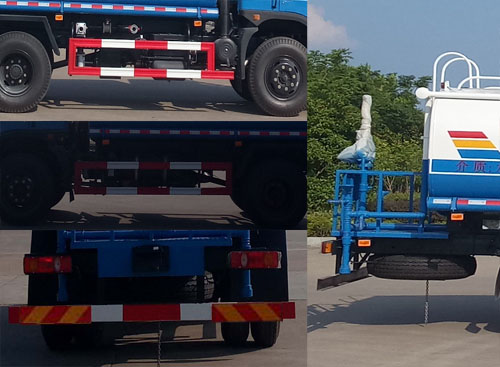 该车专用装置罐体和水泵,用途城市绿化洒水,有效容积:9.7立方米,介质:水,密度:1.0吨/立方米,罐体外形尺寸(长×长轴×短轴)(mm):5000×2150×1350,4200×2350×1450.随底盘选装驾驶室.选装椭圆罐形,选装后喷雾机.侧/后防护材料为Q235,侧防护螺栓连接,后防护焊接,截面尺寸(mm):50×120,离地高(mm):500.ABS型号/生产厂家:3631010-C2000/东科克诺尔商用车制动系统(十堰)有限公司. |