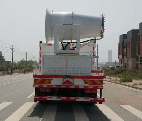 上装配置:方形折弯箱体,容积10方,配专用洒水泵(可自吸自排),前冲、后洒、侧喷、平台高炮(高炮射程水平可达28米),可选装30-120米雾炮。