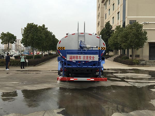 排放标准。洒水车专用部分由罐体、水泵、取力器、传动轴、球阀、喷洒装置等部件组成。采用国家定型产品,具有性能稳定、工作可靠、通用适配等特点。洒水车罐体结构为椭圆形或方圆形,采用武钢优质碳钢制作,先进的对焊接工艺,罐体内设防荡防波隔板,下端有通孔,罐体成型后高压气体试漏检测,使罐体具有强度高、重心稳、车辆运载安全平稳等特点。