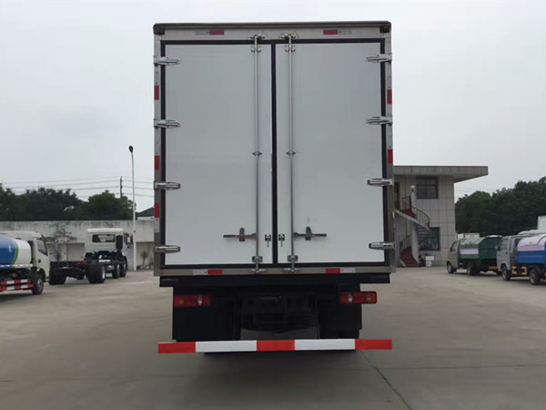 采用我公司液压吸附一体成型生产线制造,保温性能达到国家A级标准厢体内部尺寸为7500×2400×2500(mm), 厢体内外面料采用 新款纳米玻璃钢(不吸光、隔热性好、硬度强、抗氧化),厢体厚度为8cm,内衬骨架为防锈处理武钢优质轻钢型材,保温材料为无空隙填充聚氨酯发泡,厢体底部为铝合金花纹板或选平面纳米玻璃钢,厢体采用镀锌不锈钢包角,加厚型铝合金包边,后门框为不锈钢,加厚型不锈钢后门合页及锁件,厢体内部采用LED照明灯及厢体示宽灯。