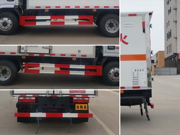 | 1、该车用于危险品运输,厢体顶部封闭,不可开启.危险货物运输车辆的类型为EX/II,该车主要用于运输独立容器包装的介质:黑火药、压缩黑火药、硝胺炸药,电(非电)引爆雷管,爆破用、专用烟火制品、无烟火药、糊状火药、爆破炸药、点爆索,软的、点燃导火索、射弹,带有爆炸装药、聚能装药,不带雷管、聚能炸药,不带雷管、非电引爆雷管组件,爆破用、油井用弹药筒、固态推进剂、动力装置用弹药筒、商品爆炸装药,不带雷管.运输介质类项号:1.1D,1.1D,1.4G,1.1B,1.1B,1.1G,1.1C,1.3C,1.1D,1.1D,1.4G,1.1D,1.1D,1.1B,1.1B,1.3C,1.1C,1.3C,1.1D。该底盘仅选用3308mm轴距。2、侧/后防护材料为Q235,侧防护螺栓连接,后防护焊接连接,截面尺寸100×50mm,下边缘离地高450mm。3、选装前面罩,前保险杠,前组合灯具,选装左右油箱位置。选装侧开门,侧门选装单开门、双开门、不开门,选装侧门型式及位置。仅选用排气管前置、限速装置(限速80km/h)、前轮盘式制动及子午线轮胎的底盘;安装带有卫星定位功能的行驶记录仪;ABS厂家及型号:襄阳东风隆诚机械有限责任公司/ABS/ASR-24V-4S/4M。发动机/油耗值(L/100km):CY4BK461/16.2,CY4BK161/16.2,YCY24140-60/16.2,D20TCIF1/16.2,D25TCIF1/16.2,CA4DB1-11E6/16.2,CA4DB1-13E6/16.2。 |