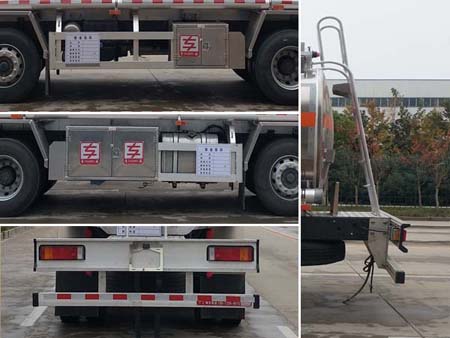 | 1、该车适用于危险品运输,运送危险货物车辆类型为:FL型,类项号:3。罐体有效容积20.5立方米,运输介质:柴油,煤油,汽油,密度:830,800,700千克/立方米。罐体外形尺寸(长×宽×高)(mm):7200×2300×1600。前悬/轴距/后悬对应关系为(mm):1512/1950+4150/2538,1445/1950+4150/2605。2、侧/后防护材料均为铝合金,螺栓连接;后防护截面尺寸120×60mm,下边缘离地高490mm。3、随底盘选装驾驶室,选装平顶驾驶室;仅选用消声器前置、限速装置(限速80km/h)、前轮盘式制动及子午线轮胎的底盘;安装带有卫星定位功能的行驶记录仪;ABS型号/企业: ABS-E 4S/4M/威伯科汽车控制系统有限公司。发动机与油耗值(L/100Km)对应关系为YC6JA240-50/31.82。 该车后轴为采用空气悬架. |