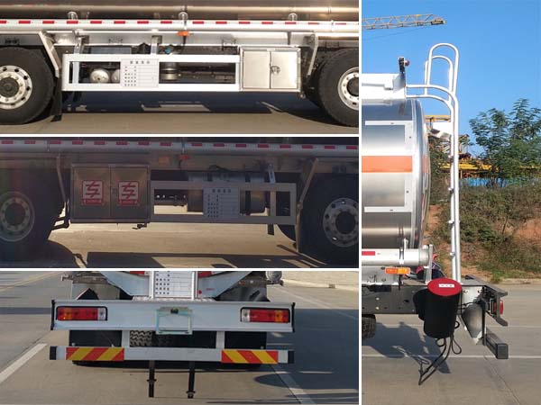 铝合金油罐车特点: 2、罐内设多道防波隔板,完全按国家标准检测,罐体具有强度高,重心稳,运行安全、平稳的特点。 3、结构紧凑,工艺美观,联接牢靠,质量稳定,性能优越,导电性好,耐腐蚀强。 4、罐体采用优质铝板,车架均采用铝合金型材,整车重量相对钢罐减轻30%~40%,可有效减少车辆行驶中产生的油耗费用,装载量多,重量轻,为用户有效节省损耗成本。 5、铝合金油罐车防腐功能高,使用年限长,且铝合金罐体可回收再次利用,减少报废成本。 1、该车适用于危险品运输,运送危险货物车辆类型为:FL型,类项号:3。罐体有效容积27立方米,运输介质:柴油,煤油,汽油,密度:830,800,700千克/立方米。罐体外形尺寸(长×宽×高)(mm):9000×2400×1730。后悬/轴距对应关系为(mm):2680/1950+4550+1350,2780/1900+4500+1350。2、侧/后防护材料均为铝合金,螺栓连接;后防护截面尺寸120×60mm,下边缘离地高480mm。3、选装平顶驾驶室,随底盘选装驾驶室,仅选用排气管前置、限速装置(限速79km/h)、前轮盘式制动及子午线轮胎的底盘;安装带卫星定位功能的行驶记录仪。ABS系统生产厂家:浙江万安科技股份有限公司,型号:VIE ABS-Ⅱ。发动机/油耗值(L/km)对应关系为:CA6DK1-32E51/38.5。 该车后轴为采用空气悬架. |