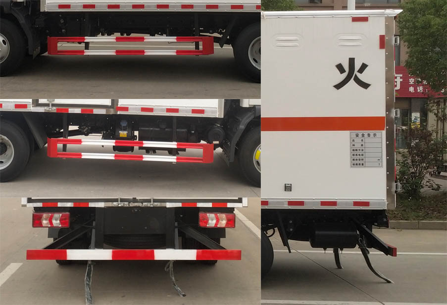 | ABS型号:CM4XL-4S/4M,VIE ABS-Ⅱ;ABS生产企业:广州瑞立科密汽车电子股份有限公司,浙江万安科技股份有限公司;安装有限速装置;限速装置限速(km/h):80;安装有具有卫星定位功能的行驶记录仪;选装描述:选装侧开门,侧门单开门、侧门双开门、侧门不开门,选装侧门型式及位置,选装瓦楞板,选装后部样式;发动机/油耗值(L/100km)对应关系为:WP2.3NQ130E61/10.83;侧后防护情况:侧面防护及后下部防护装置材料材质:Q235,连接方式:侧防护螺栓连接和焊接连接,后防护焊接连接,后下部防护装置断面尺寸(宽×高):50×100(mm),离地高度:390mm;车厢顶部封闭且不可开启;专用功能及装置:该车用于危险品运输;运输独立容器(瓶)包装的货物;危险货物类项号:2.1,2.2;其他说明:该车型可选装ETC车载装置,该车仅选用排气管前置,前盘制动,子午线轮胎,转向轮安装轮胎爆胎应急防护装置,运输易燃气体时挂2.1类警示牌,运输非易燃无毒气体时挂2.2类警示牌; |